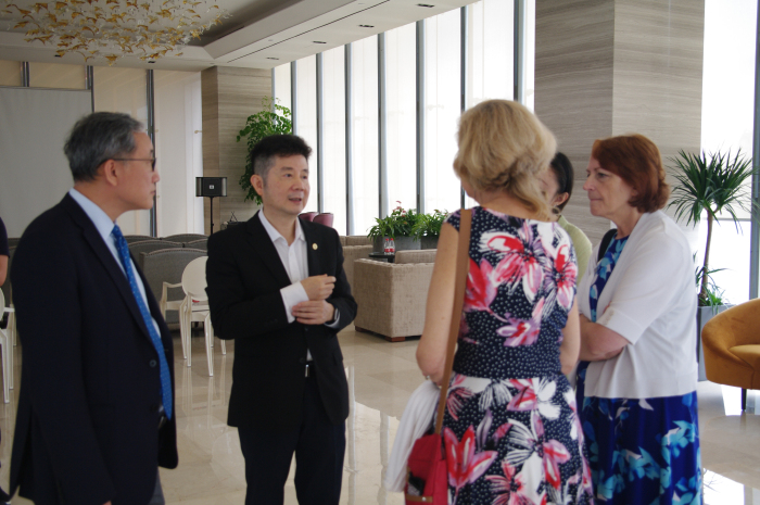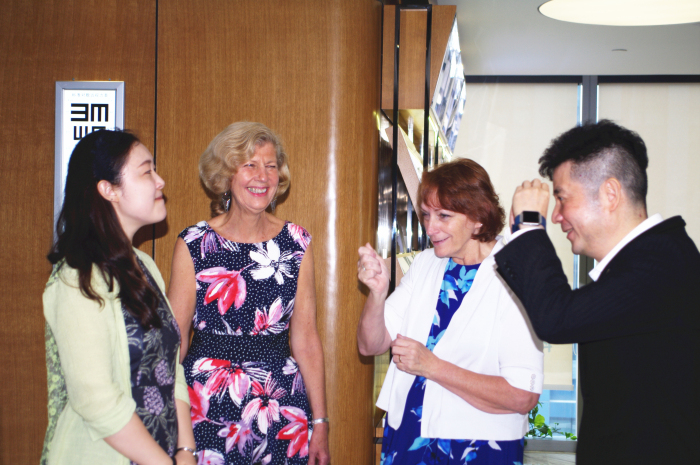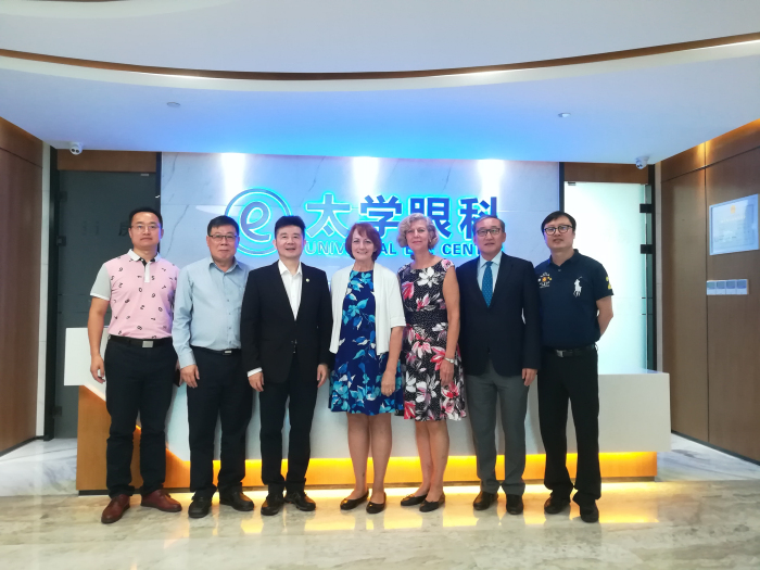 角膜塑形术的探索之旅 视光大师私享沙龙圆满结束 今日杭州,阳光明媚,微风徐徐,杭州太学眼科迎来了美国欧几里德总公司专业事务副总裁乔安•西蒙森女士,芝加哥大学视光学教授Janice Jurkus 博士,以及欧几里德贸易(上海)有限公司总经理曹强、副总裁郭红光一行的参观访问。