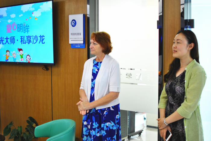 步入太学眼科门诊大厅,目之所及是微笑迎接的门诊护士、科技智能的检查设备、高端又温馨的就诊空间,还有大厅随处可见的欢迎语,两位女士不禁会心一笑。Janice Jurkus 博士笑着说道,“我很期待下午的沙龙活动,也希望我的分享能让参与的观众有所收获!”